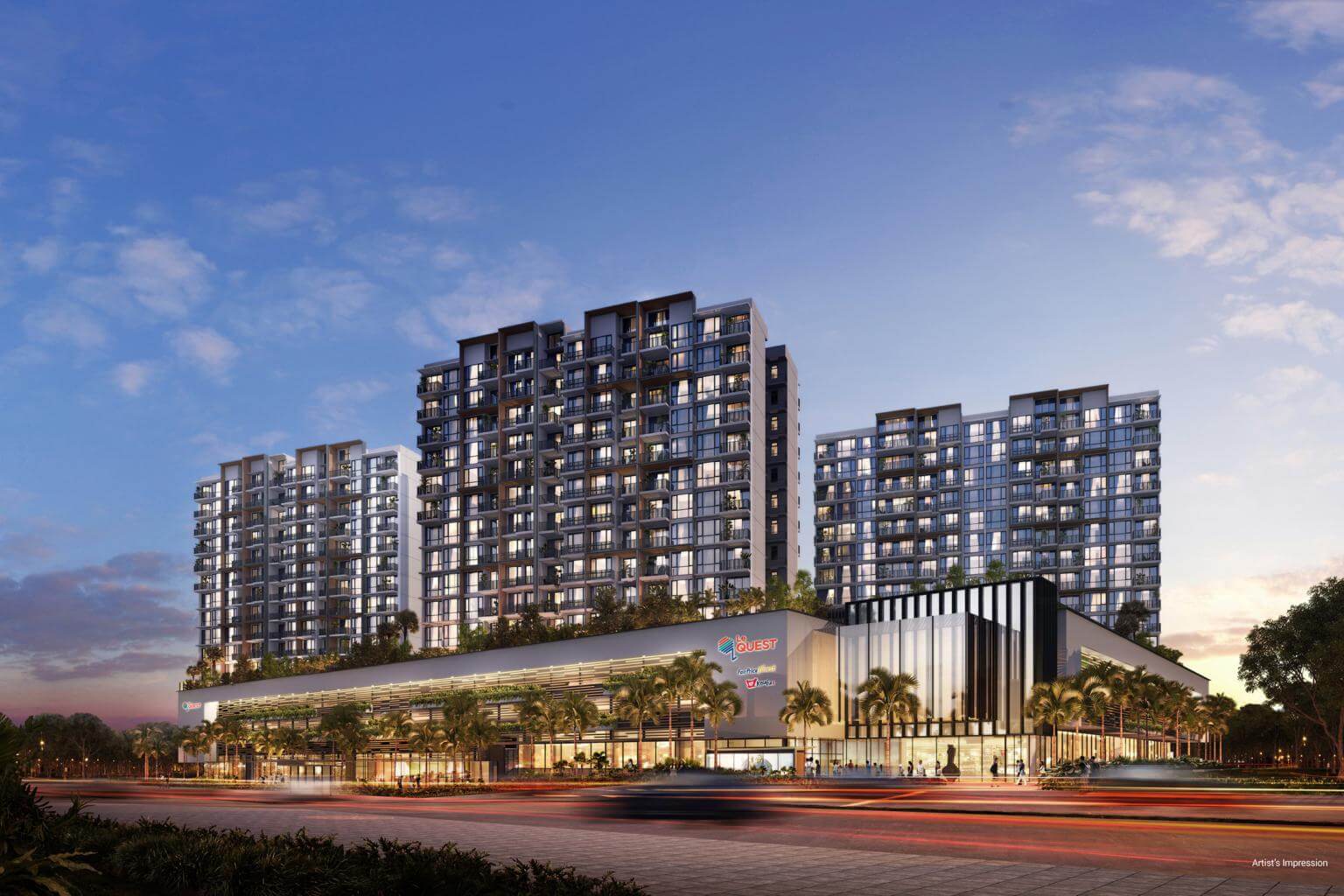 Le Quest comprises 516 studio and one- to four-bedroom units and over 6,000 square metres of commercial space.