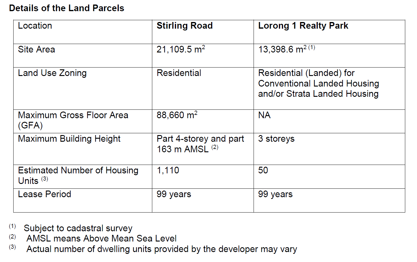 The 99-year leasehold sites together can potentially yield about 1,160 residential units.