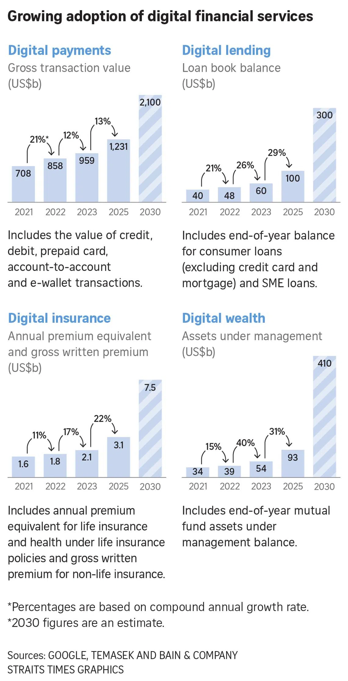“The irreversible offline-to-online behaviour shift continues to drive growth in digital financial services adoption,” said Google, Temasek and Bain & Company in a press statement. “Digital lending is the single biggest driver... due to high lending rates and consumer demand, as underbanked consumers and small businesses participate in the digital economy.”
