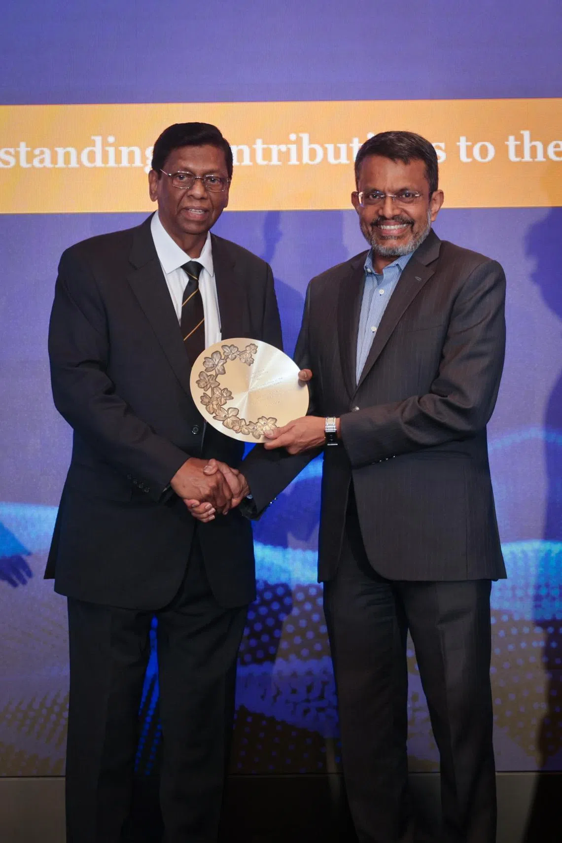 At the launch event, Mr Gerald presented Mr Menon with an award ahead of Mr Menon’s retirement,