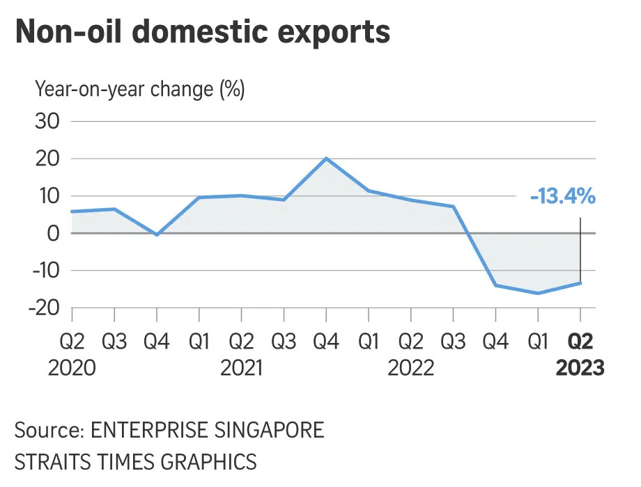 Stripping out seasonal fluctuations from the data, Singapore’s economy expanded by 0.1 per cent in the second quarter compared with the previous quarter, a reversal from the 0.4 per cent contraction in the first quarter of 2023.