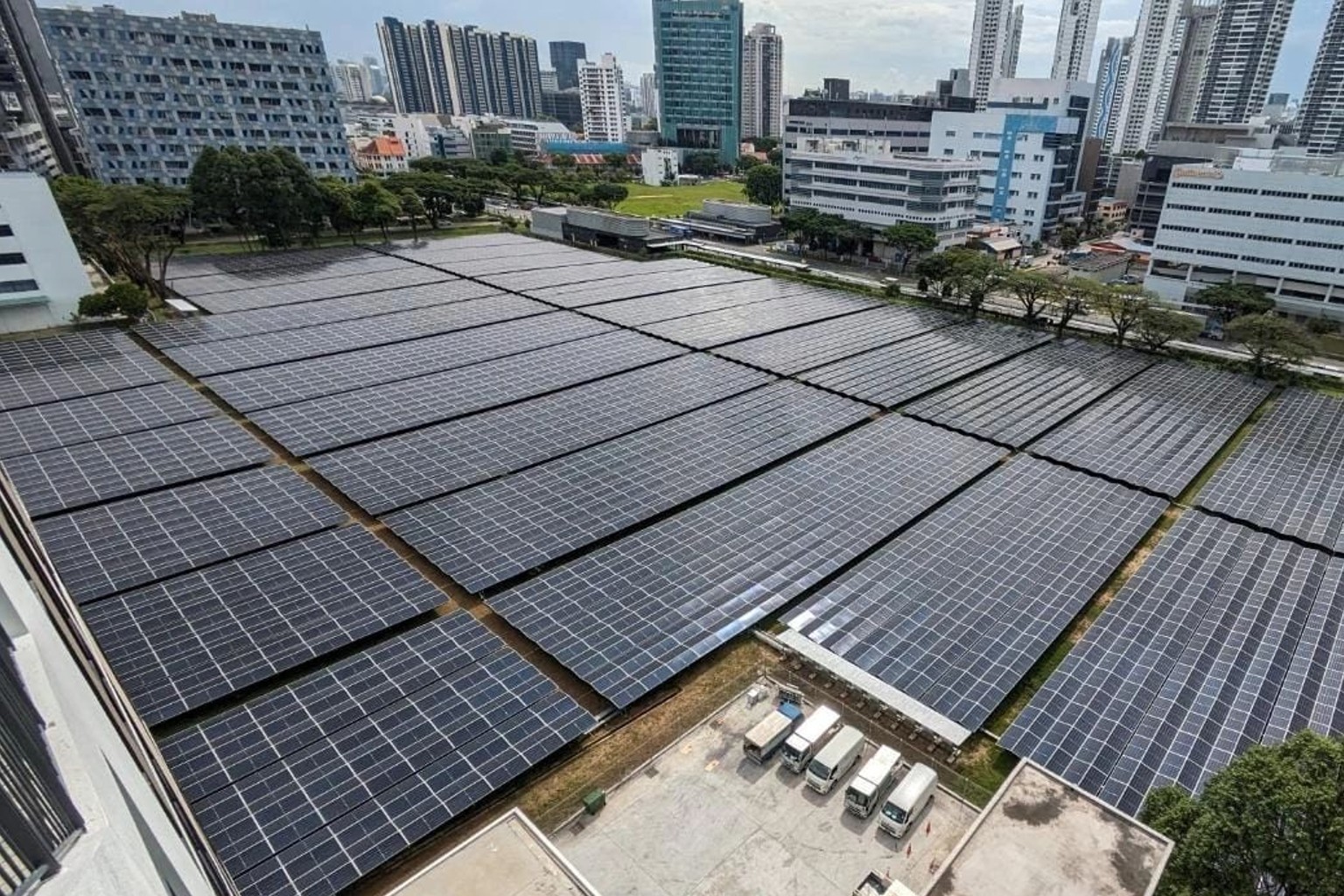 Enova Electrical's Kallang Basin project, under JTC's SolarLand programme, utilises vacant land to generate solar energy for the national grid. PHOTO: ENOVA ELECTRICAL