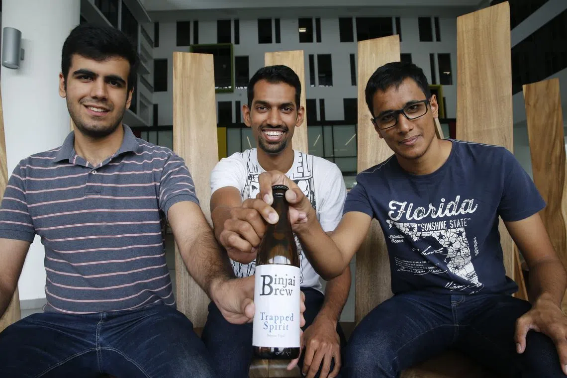 (From left) NTU students Heetesh Alwani, Rahul Immandira and Abilash Subbaraman started brewing craft beer in their hostel.