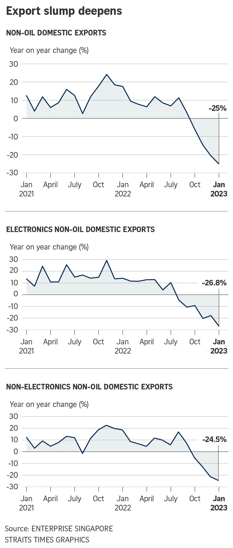 Non-oil domestic exports (Nodx) for January fell by a sharper 25 per cent from a high base a year ago.