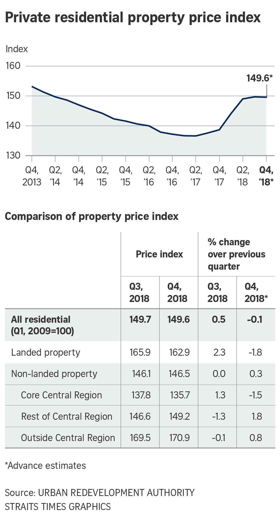Mr Cheong added: "For the first quarter of 2019, the maiden launch of new projects derived from collective sales sites may lift the index up marginally as the land was purchased at relatively high prices in the 2017 and early 2018 period."