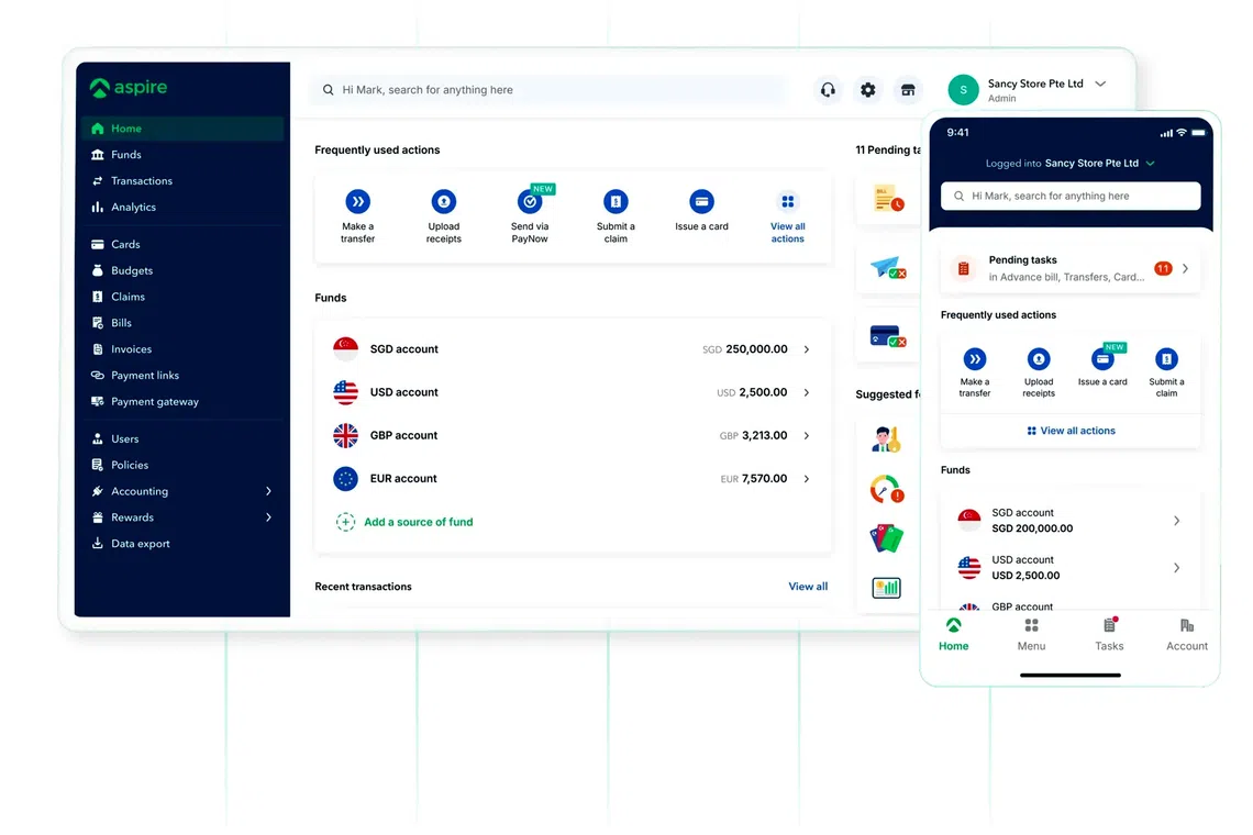 - Aspire's expansion enables Singapore companies to use its financial services as they grow overseas, avoiding the need to establish new banking relationships in each market.