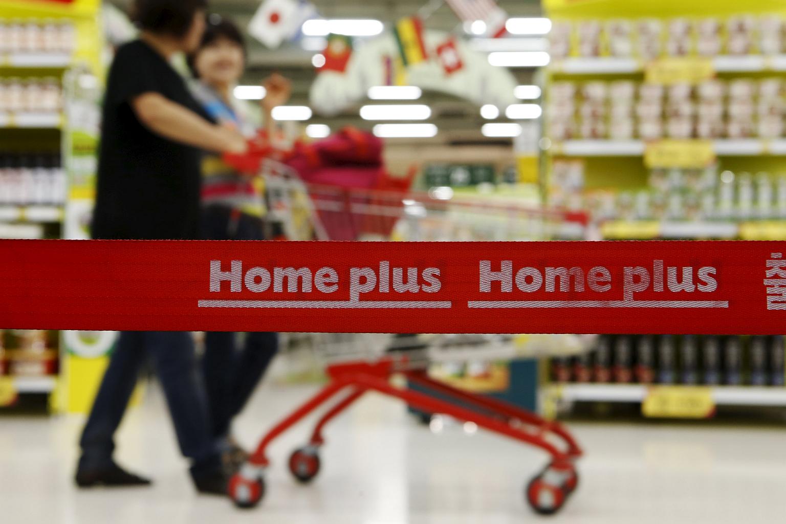 Because of a national restriction on Sunday opening hours for hypermarkets, Homeplus's same-store sales have been in decline since 2011, dropping 4 per cent last year. The chain swung to a net loss of 300.1 billion (S$35 billion) won in the year ended Feb. 28 from a profit a year earlier, while revenue shrank to 8.6 trillion won amid weak household spending.