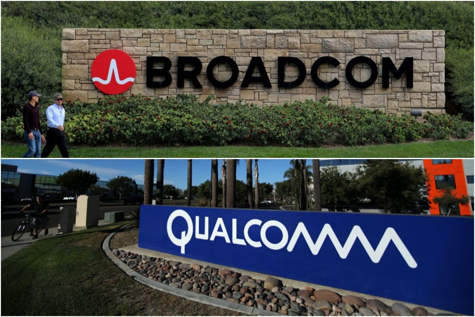 Shares of Broadcom rose less than 1.0 per cent to US$264.10 in after hours trade while Qualcomm fell 4.3 per cent to US$60.14.