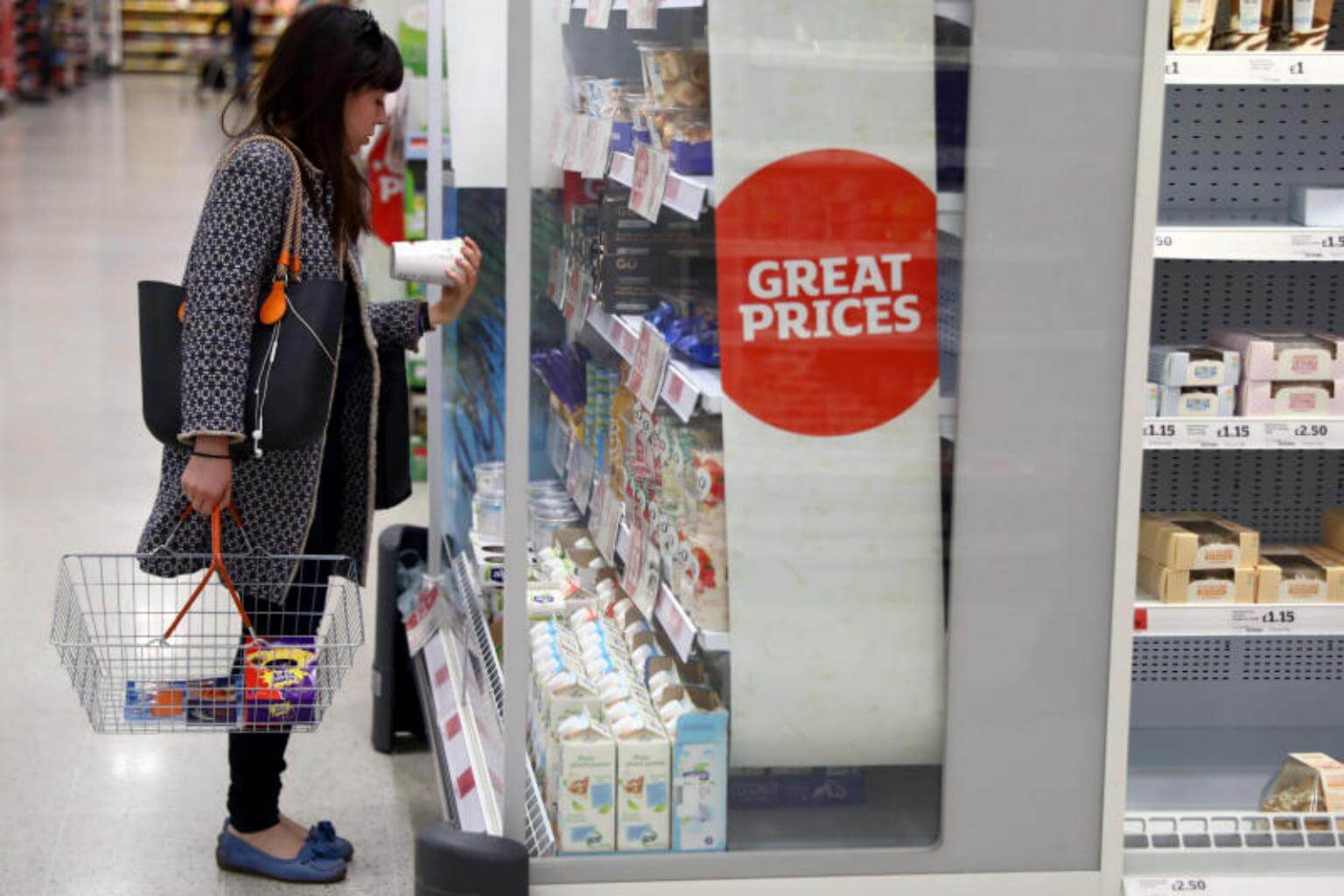 A woman shops in a supermarket in London.