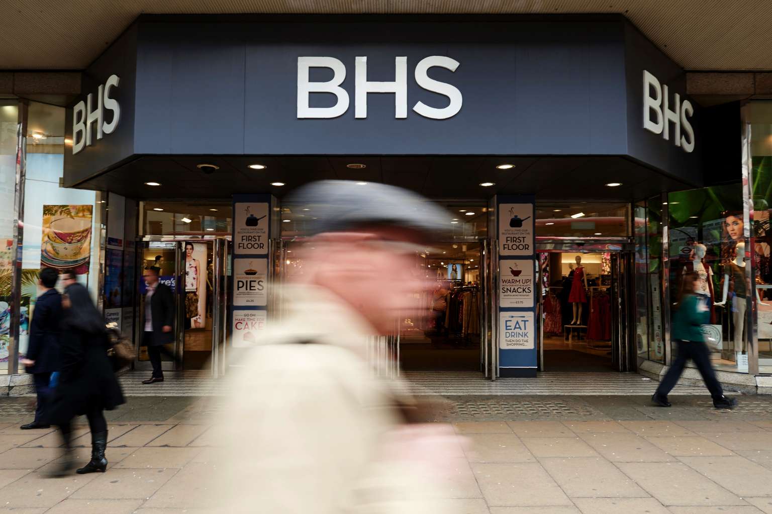 Pedestrians walking past the entrance to a BHS store on Oxford Street in central London on April 25, 2016.