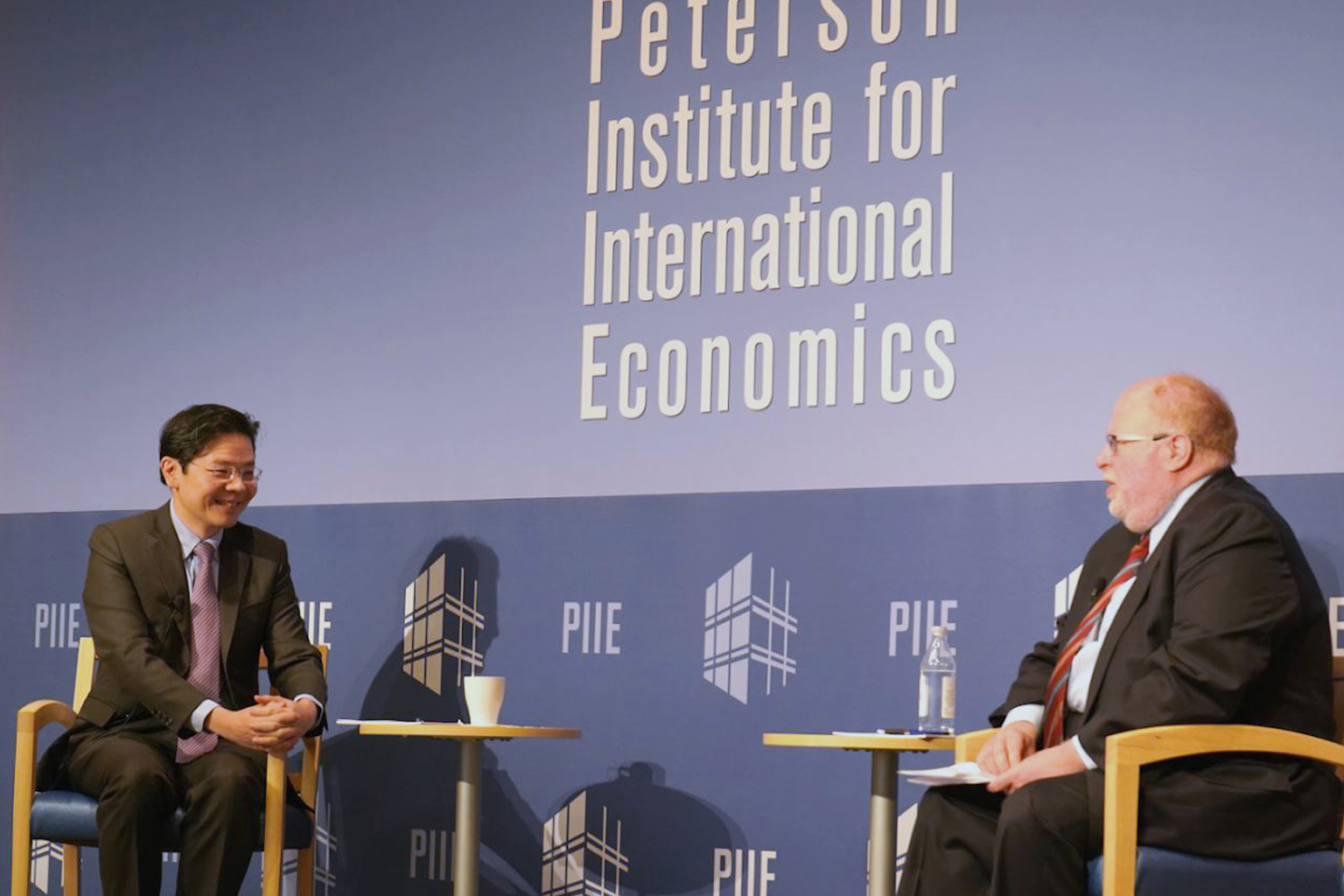 Finance Minister Lawrence Wong at a dialogue with Peterson Institute for International Economics president Adam Posen.
