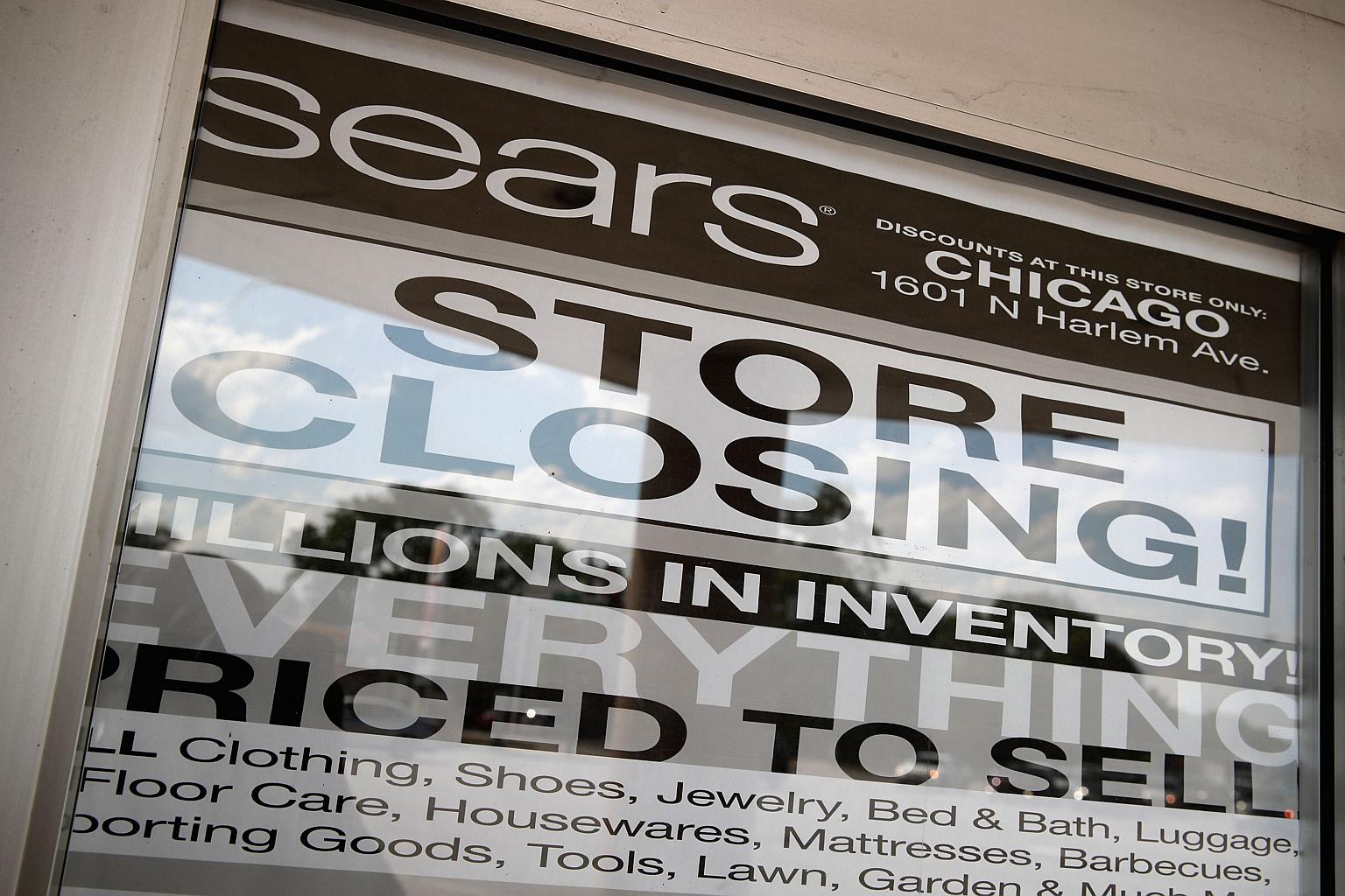 A sign announcing the store will be closing hangs on the door of the 60-year-old Sears store in the Galewood neighborhood on July 7, 2017 in Chicago, Illinois.