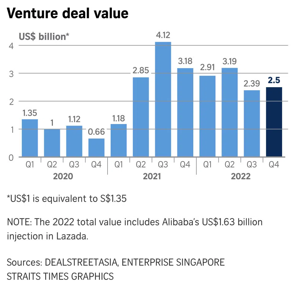 SINGAPORE – The amount of venture capital funding raised by Singapore-headquartered tech companies dipped in 2022 as investors turned cautious amid an uncertain macroeconomic climate.