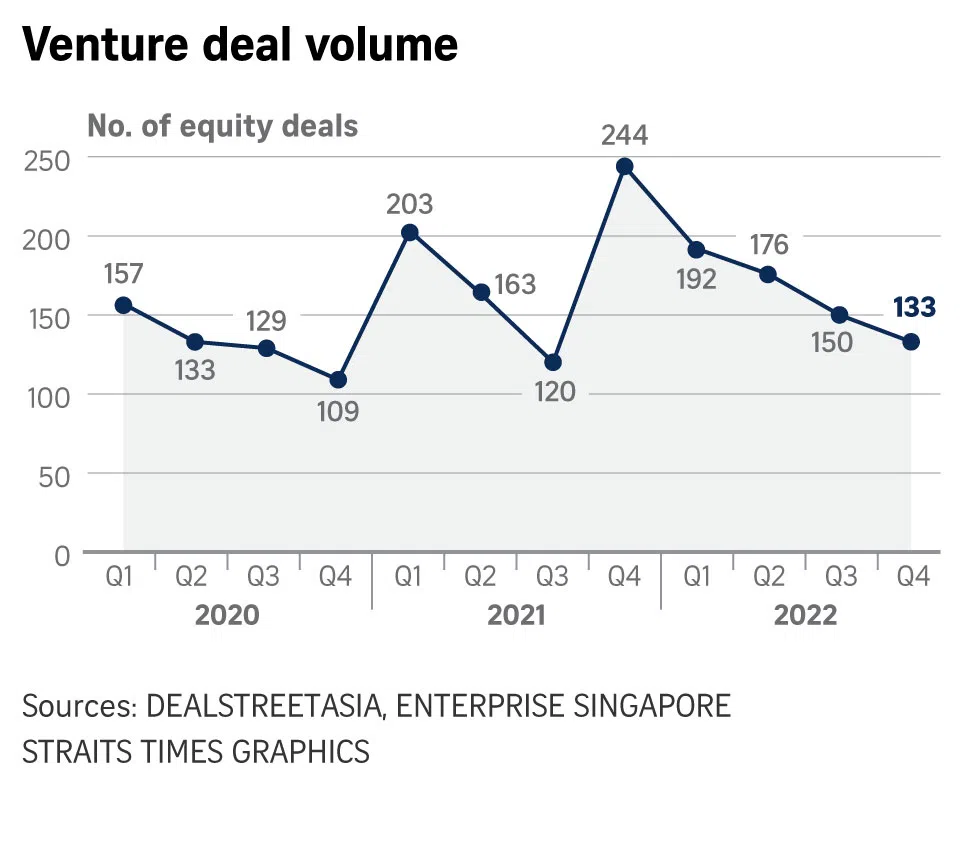The number of equity deals involving Singapore start-ups has been trending downwards since the fourth quarter of 2021.
