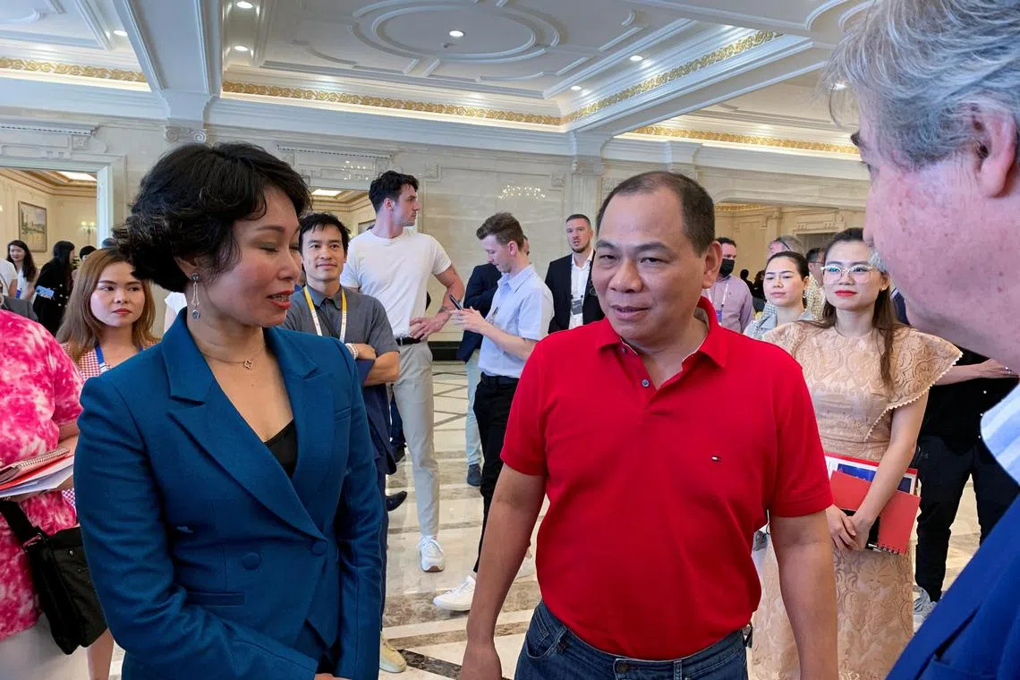 VinFast chairman Pham Nhat Vuong (centre) will become the company’s new chief executive, taking over from current CEO Le Thi Thu Thuy (left), who has held the post since late 2021.