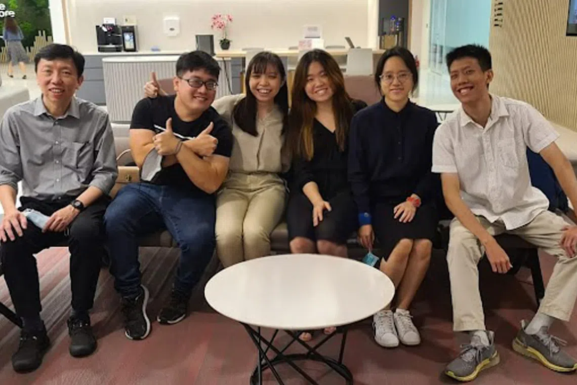 Jimmy (second from left) and Madeline (third from left) at the Enterprise Singapore Heartland Innovation Challenge where they developed an artificial intelligence-powered fish freshness grading system.