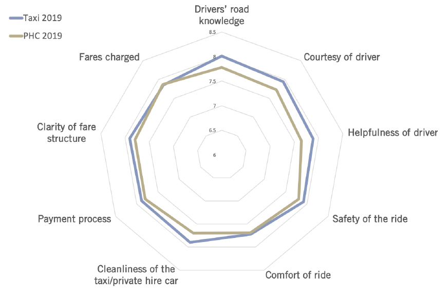 A good example is reflected in the CSISG study's analysis of point-to-point transport service. It found that passengers gave a higher score to taxis than private hire cars, based on common attributes such as the "helpfulness of driver" and "driver road knowledge". Such aspects were important to the passengers as they made them feel safe on their journey.
