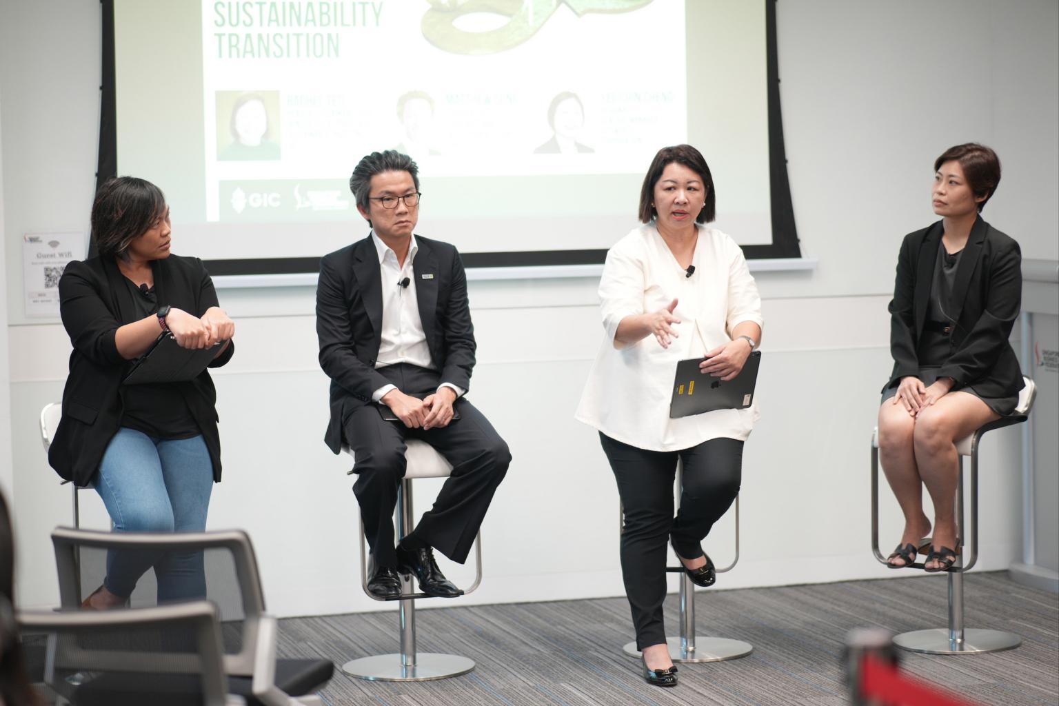 (From left) Common Ground director and creative strategist Kuik Shiao-Yin, SGX senior vice-president Matthew Song, GIC's head of sustainability and head of total portfolio sustainable investing Rachel Teo, and DTC World regional general manager Cheng Yee Chin at a panel discussion during the launch of the initiative.