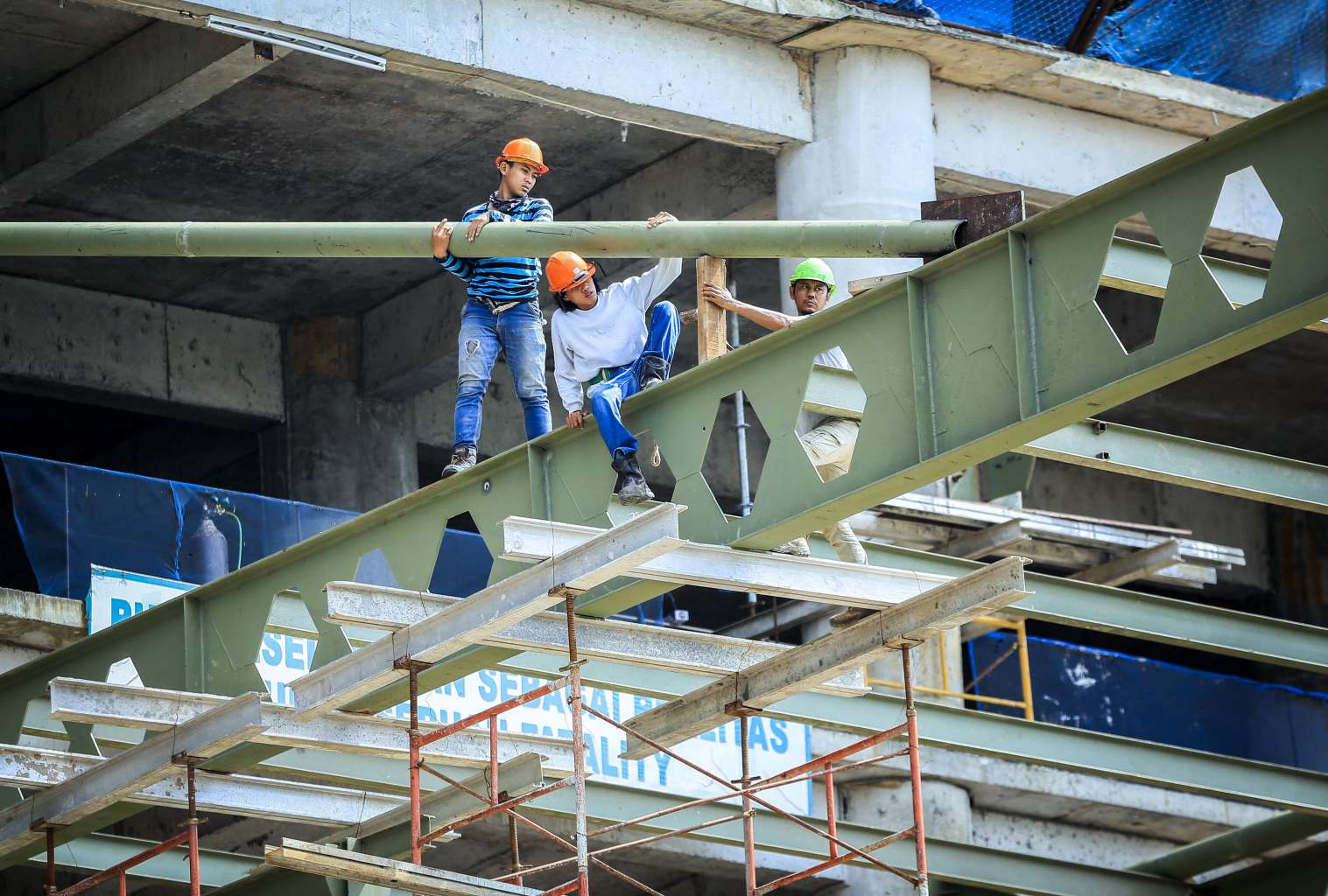 Indonesian labourers at a construction site in Medan. The World Bank projected Indonesia's growth at 5.2 per cent in 2017, down from its previous 5.3 per cent estimate.