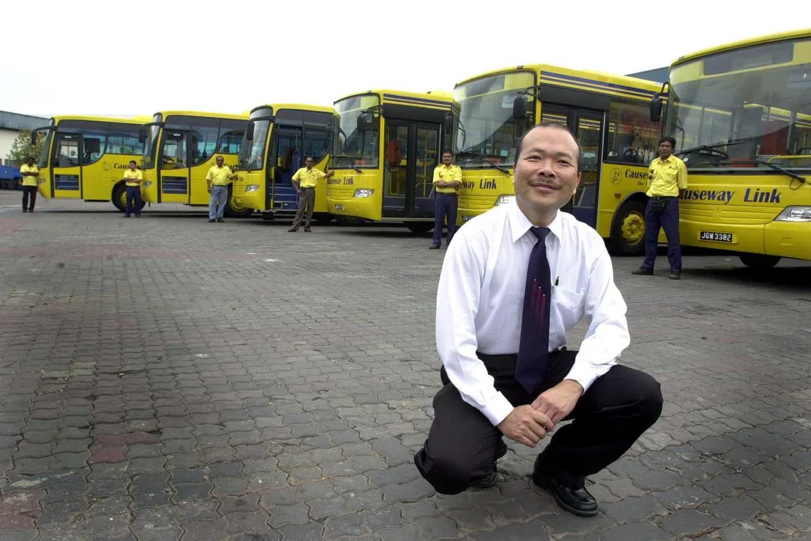 A younger Mr Lim Han Weng posing in front of his fleet after securing the licence in 2003 to run cross-border bus rides under the Causeway Link brand.
