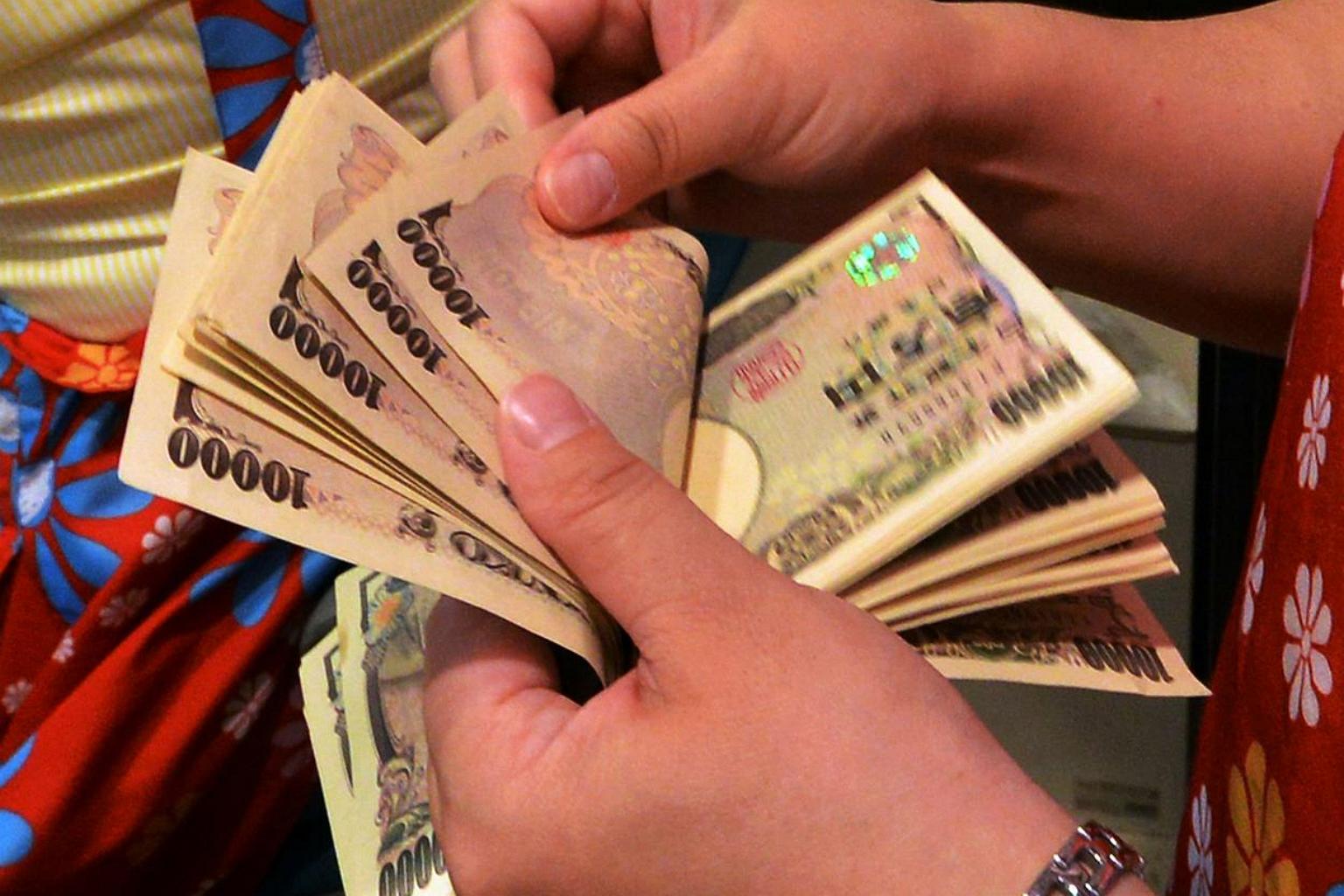 This file photo taken in 2014 shows a bank clerk counting Japanese currency notes in Tokyo.