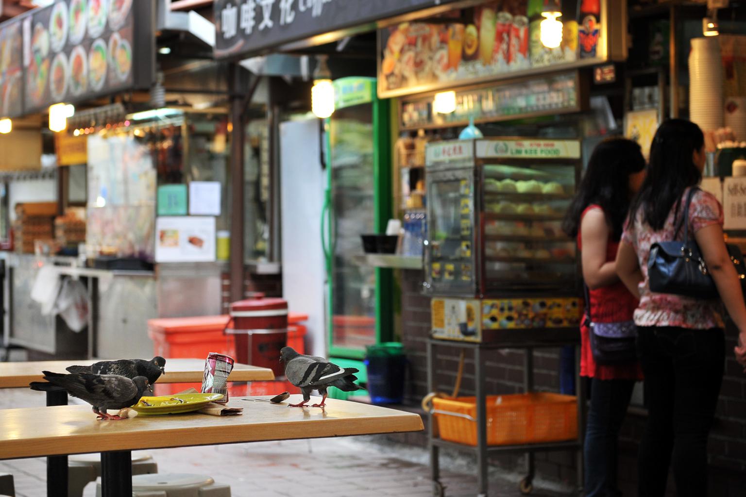 I have eaten at several hawker centres and other open-air eateries that are frequented by birds of all kinds.