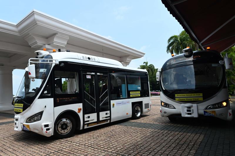 On-demand autonomous shuttle buses are seen at Sentosa island resort in Singapore on Aug 20, 2019.