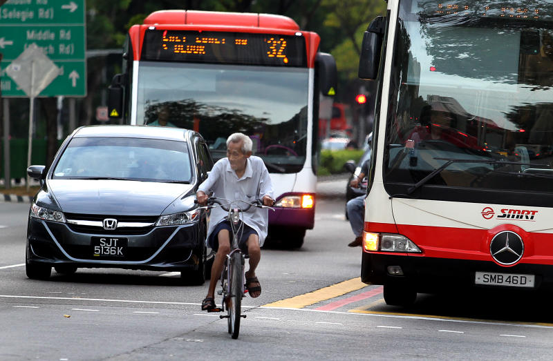 An elderly man cycles along North Bridge Road on Oct 30, 2013.