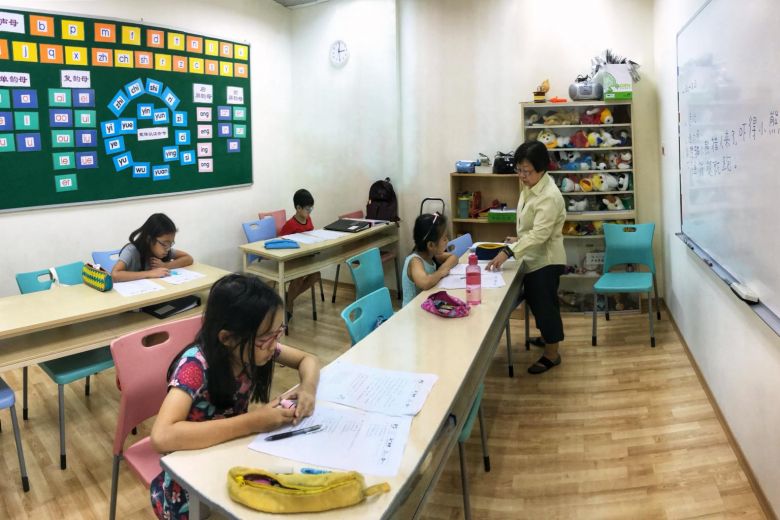 In a picture taken on Oct 29, 2017, children attend a Chinese class at Han Language Centre in Eastpoint Mall.