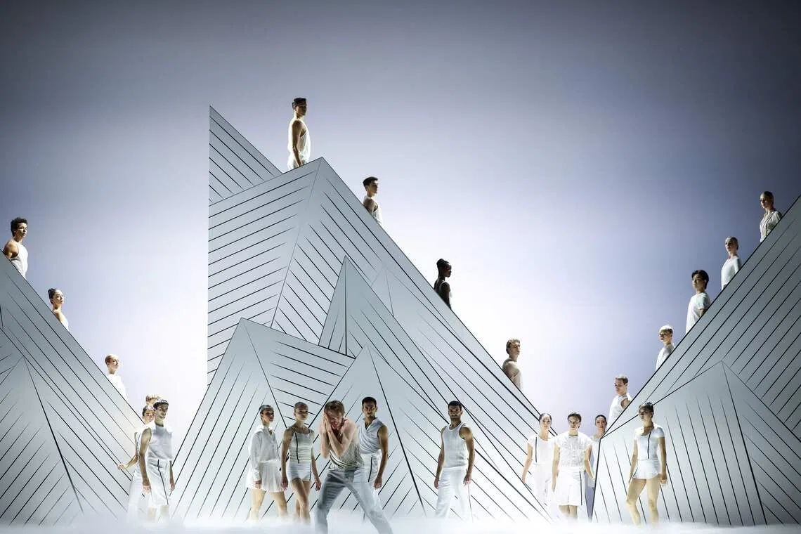 Dancers of the Monte-Carlo ballet performing on stage on the opening night of the Ma Bayadere ballet show, a creation by French dancer and choreographer Jean-Christophe Maillot, in Monaco, on Dec 26, 2025.