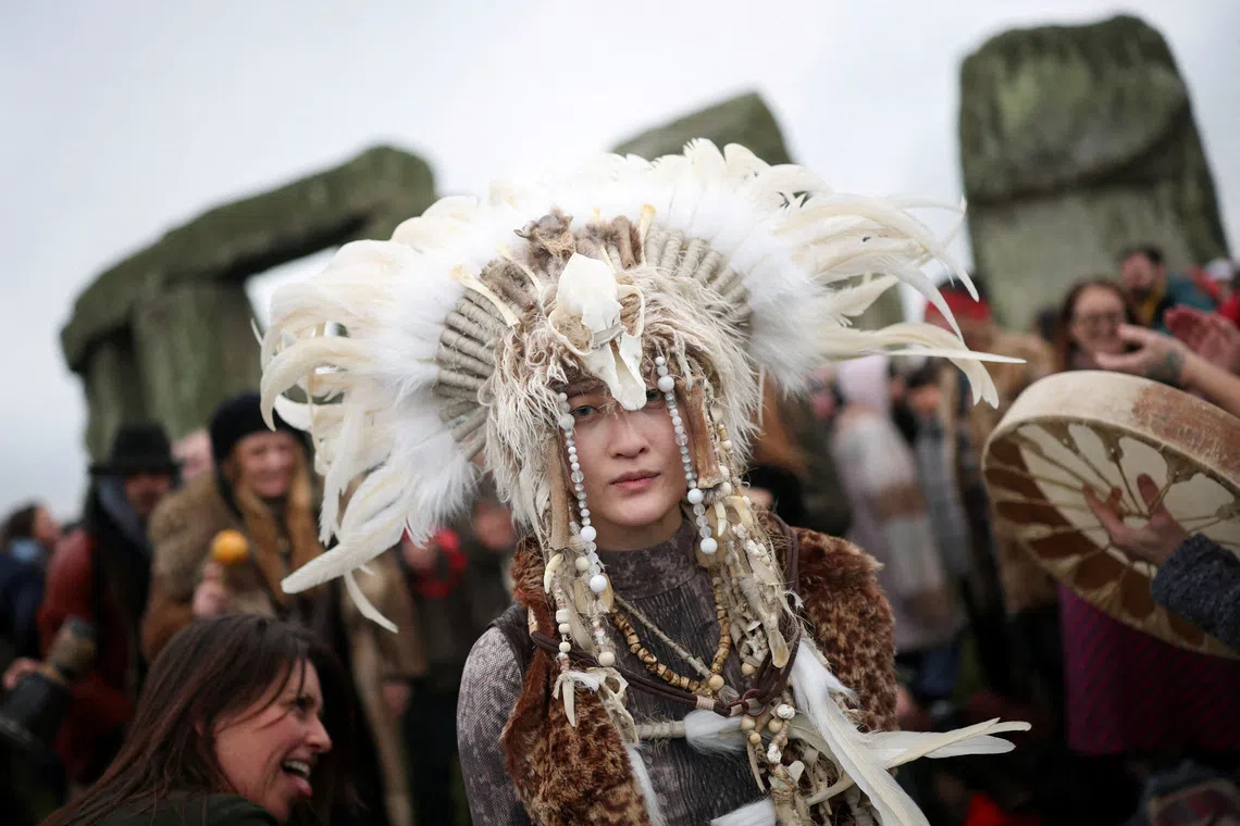 Revellers at the winter solstice celebrations at Stonehenge near Amesbury, Britain, on Dec 21.
