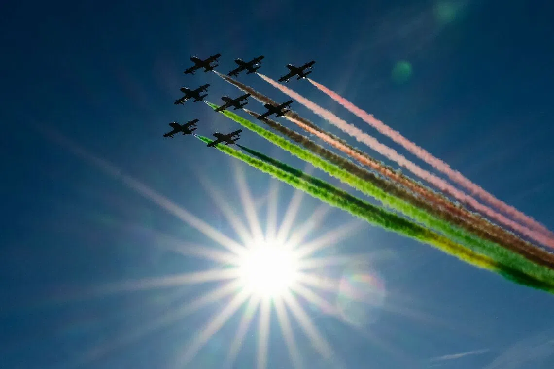 The Italian air force’s aerobatic unit performing at the FIS Alpine Ski World Cup 2025-2026 in northern Italy on Dec 21.