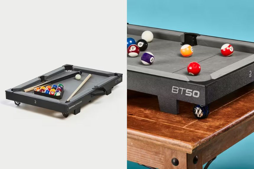 Enjoy a game of pool anytime, anywhere with this compact and portable table that’s sure to be a hit at house parties.