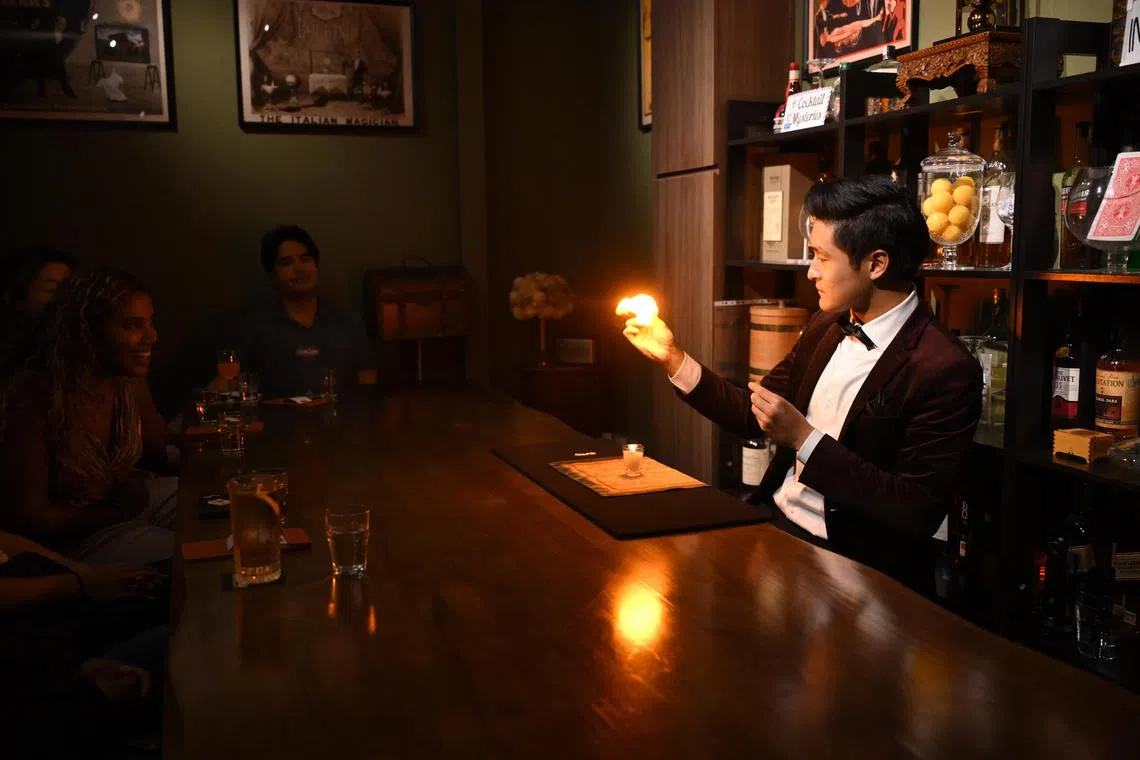 Mr Emmanuel, who has been performing magic since “he was in diapers”, says the spot is a popular date-night attraction. “The intimacy of the experience makes it a more meaningful shared experience between couples.”