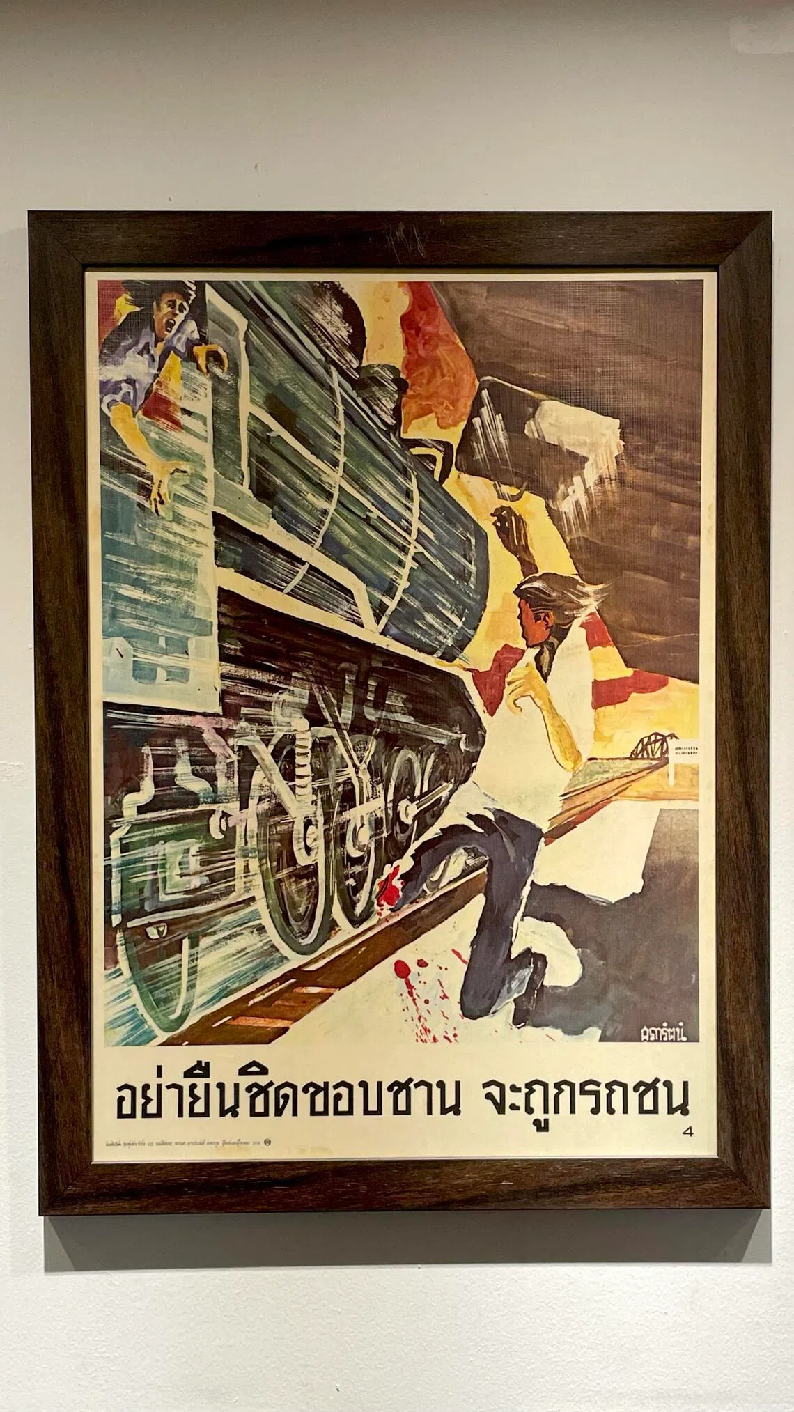 Safety poster warning about straying too close to the tracks at the Thai Railway Museum.