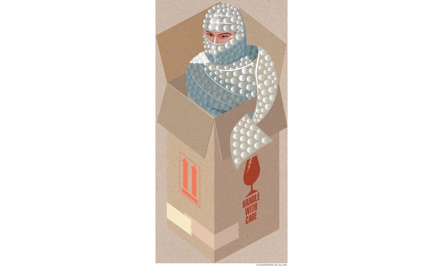 The Esplanade was practising "bubble-wrap seating", which sounds like a newfangled technology but really just means empty seats between you and the next audience member in any direction. I could not shake the image, however, of being bubble-wrapped against the perils of live theatre, like a fragile object.