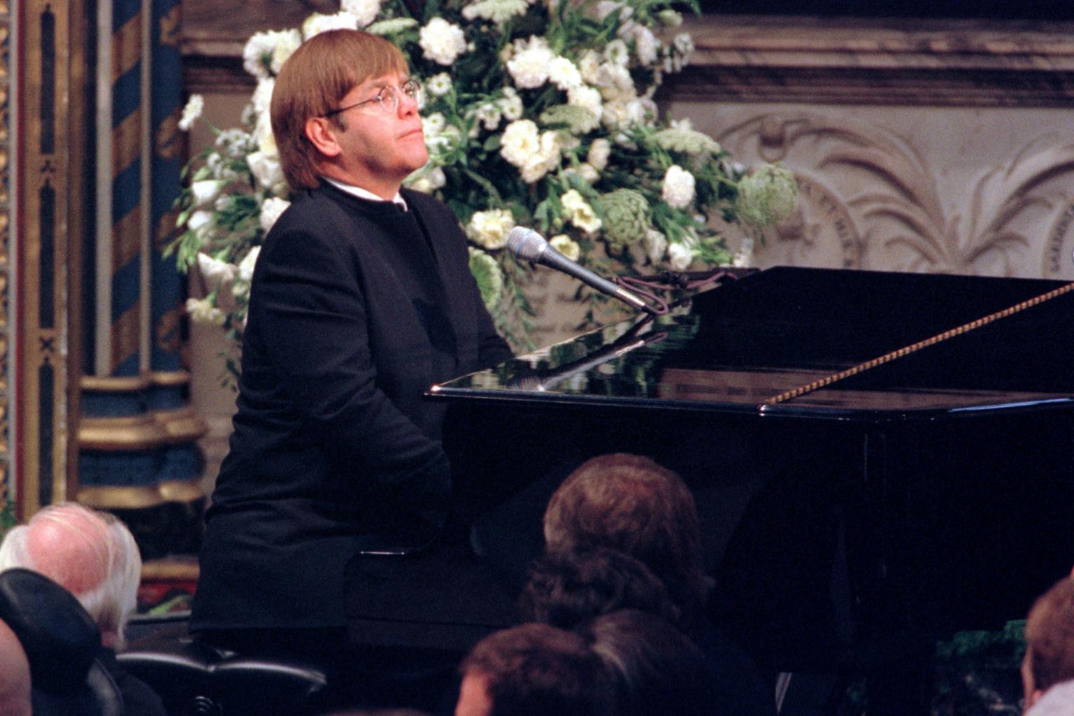 Elton John plays a specially re-written version of his classic Candle in the Wind during the funeral service for Princess Diana.