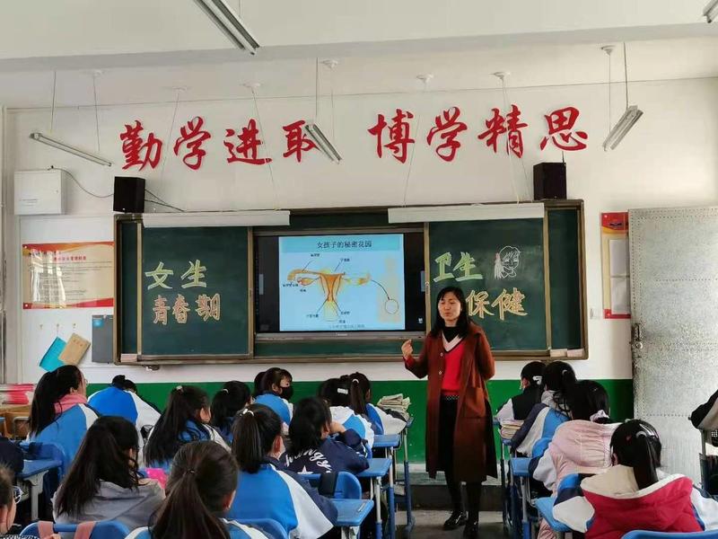 A teacher conducts a lecture on sex education to an all-girl class at the Zhangyi Middle School in the Ningxia Hui autonomous region.