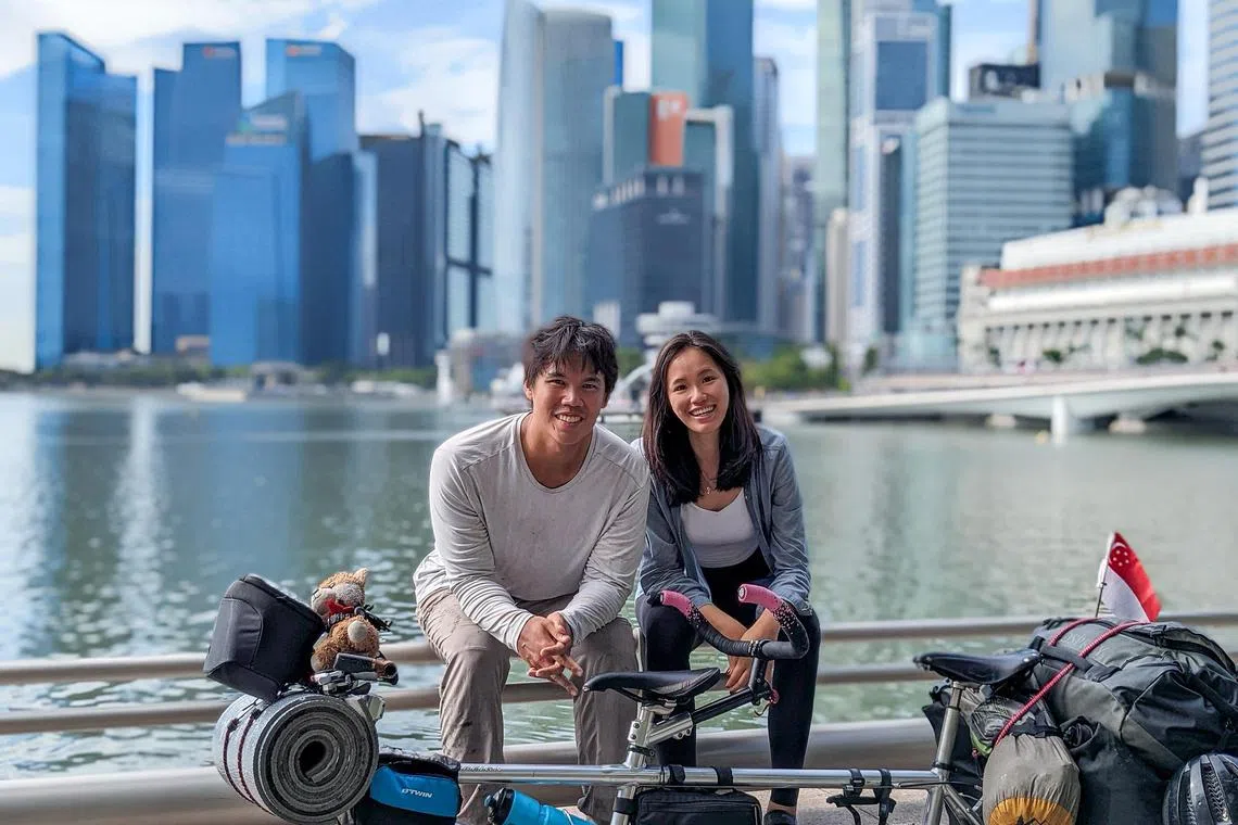 Ms Gracia Ng and Mr Ooi Yee Jia started their cycling journey from London in March 2023 and reached Singapore on Dec 21.