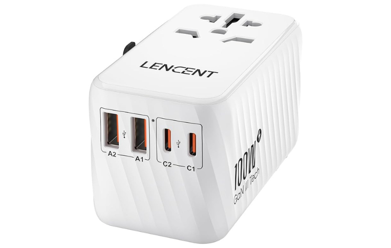 Never go without a charger again whether at home or travelling thanks to the Lencent Universal Travel Adapter, supporting UK, US, EU and AUS plugs, and a universal voltage of 100V-250V. It has interchangeable Type C, G, I and A Plugs, and a USB-C port.
