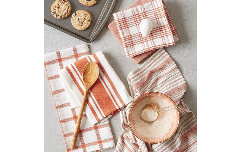 Made from 100 per cent cotton, this kitchen dish towel set is a great addition to any kitchen. They’re very absorbent, easy to dry and do not produce much lint compared to other fabrics.