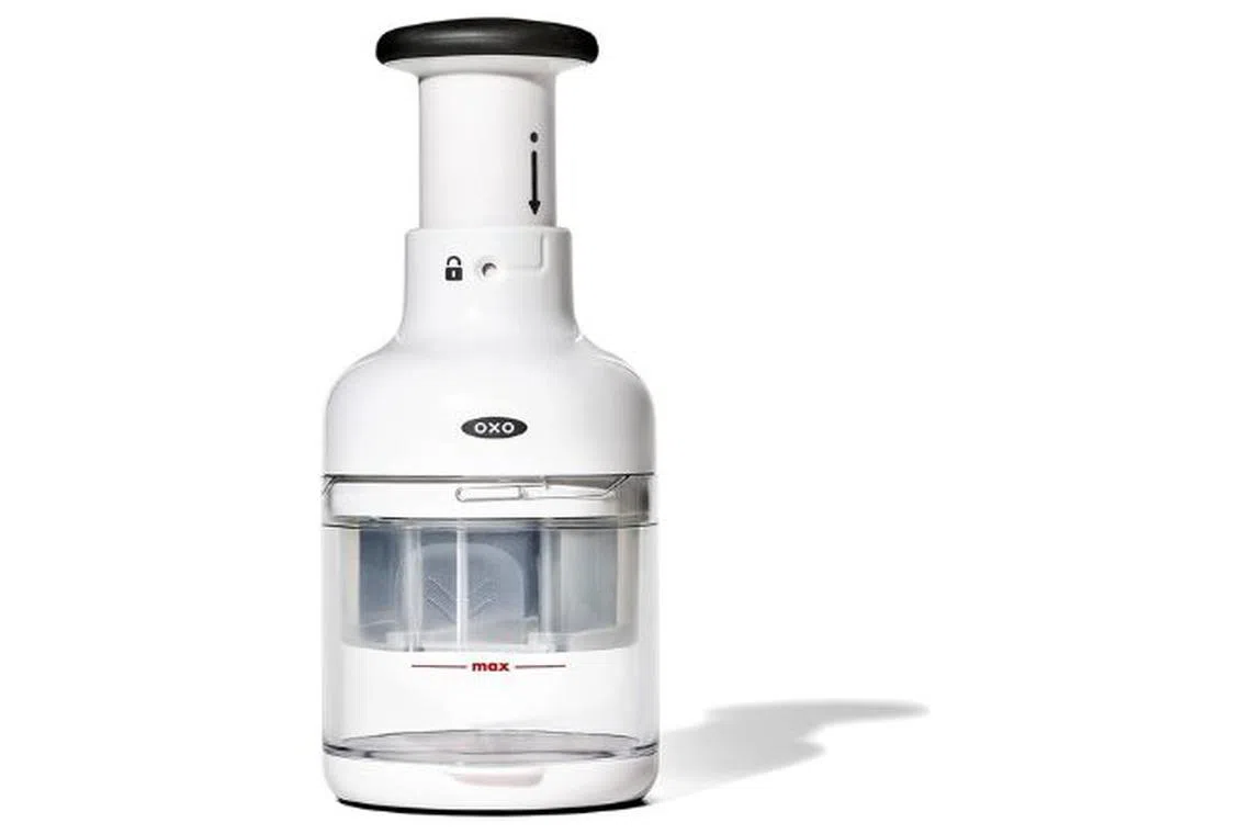 Save time (and your fingers) with the OXO Good Grips Chopper. A quick press of the handle sends its stainless steel blades spinning, chopping onions, garlic, carrots and herbs into uniform pieces with minimal effort. Easy to use, clean and store, it’s an everyday kitchen helper that earns its spot on your counter.