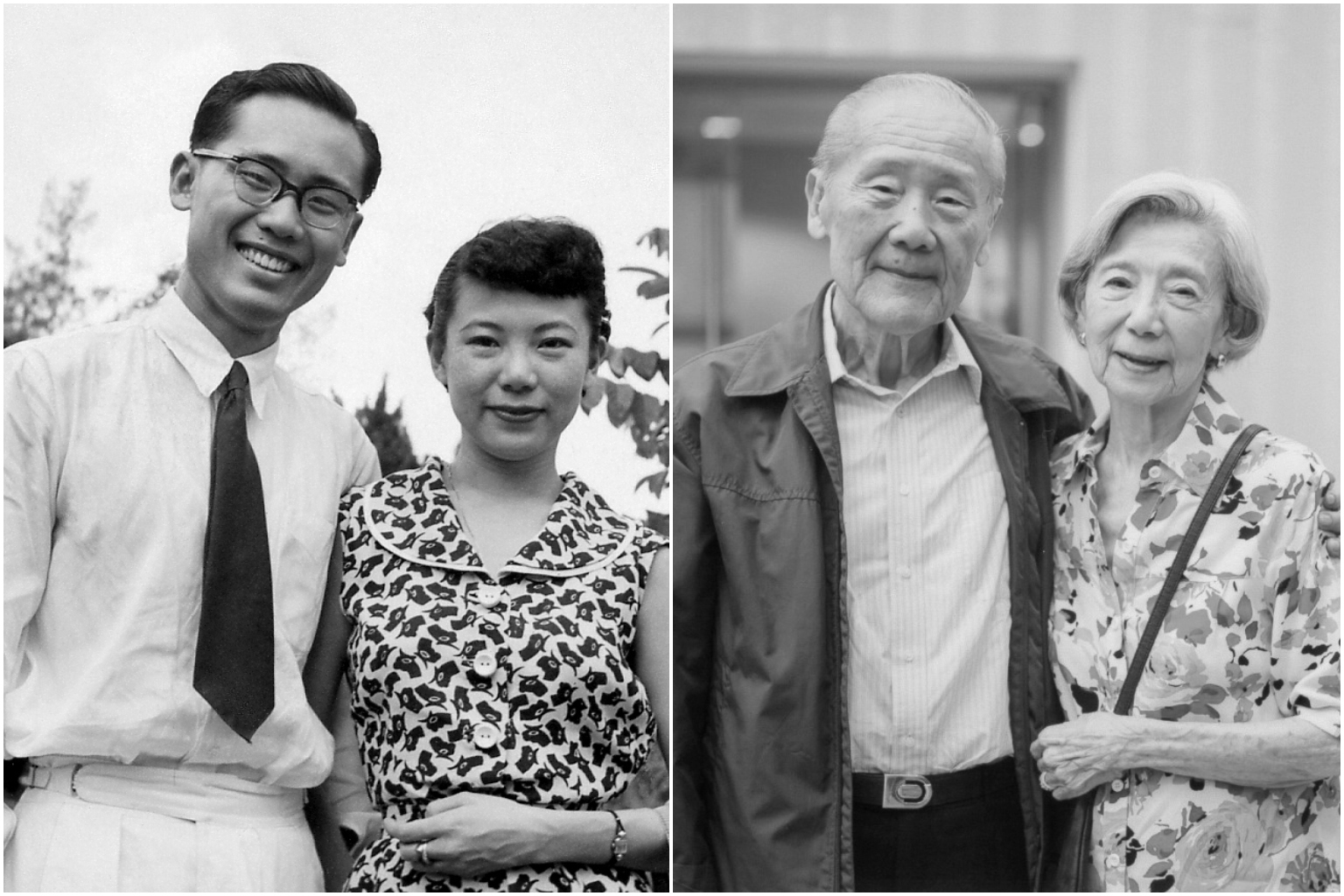 Prof Wang Gungwu and his wife Margaret in 1952 (left) and at their 60th wedding anniversary.