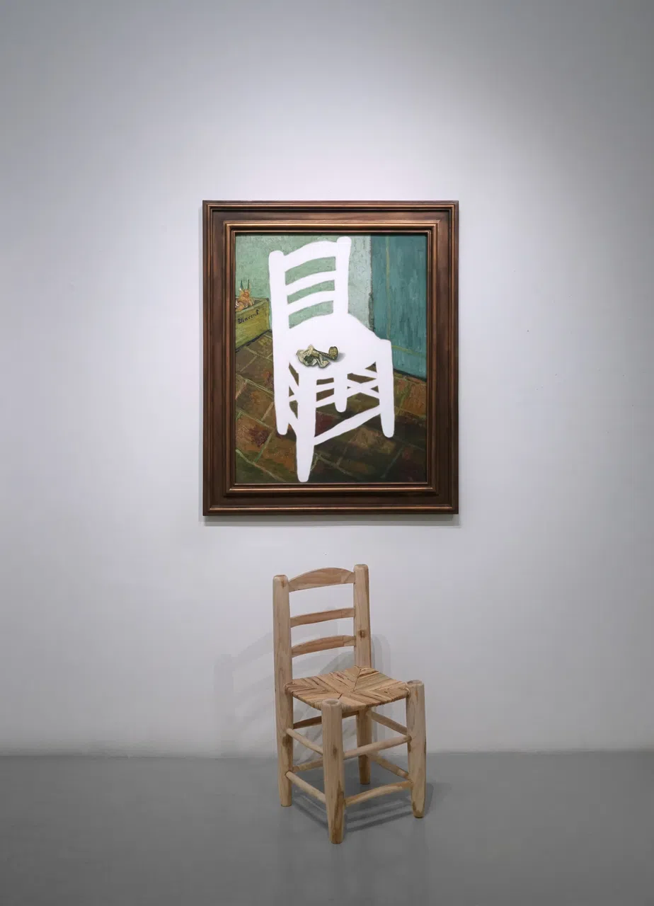 The works reference iconic paintings in art history, but invert their materials, proportions and dimensions. In one work, the chair in Vincent van Gogh’s Chair (1888) breaks out of the painting frame to become a three-dimensional entity. The humour in these new works may seem like a departure from the artist’s more angst-ridden action paintings, but she says: “I always have fun with my work.”