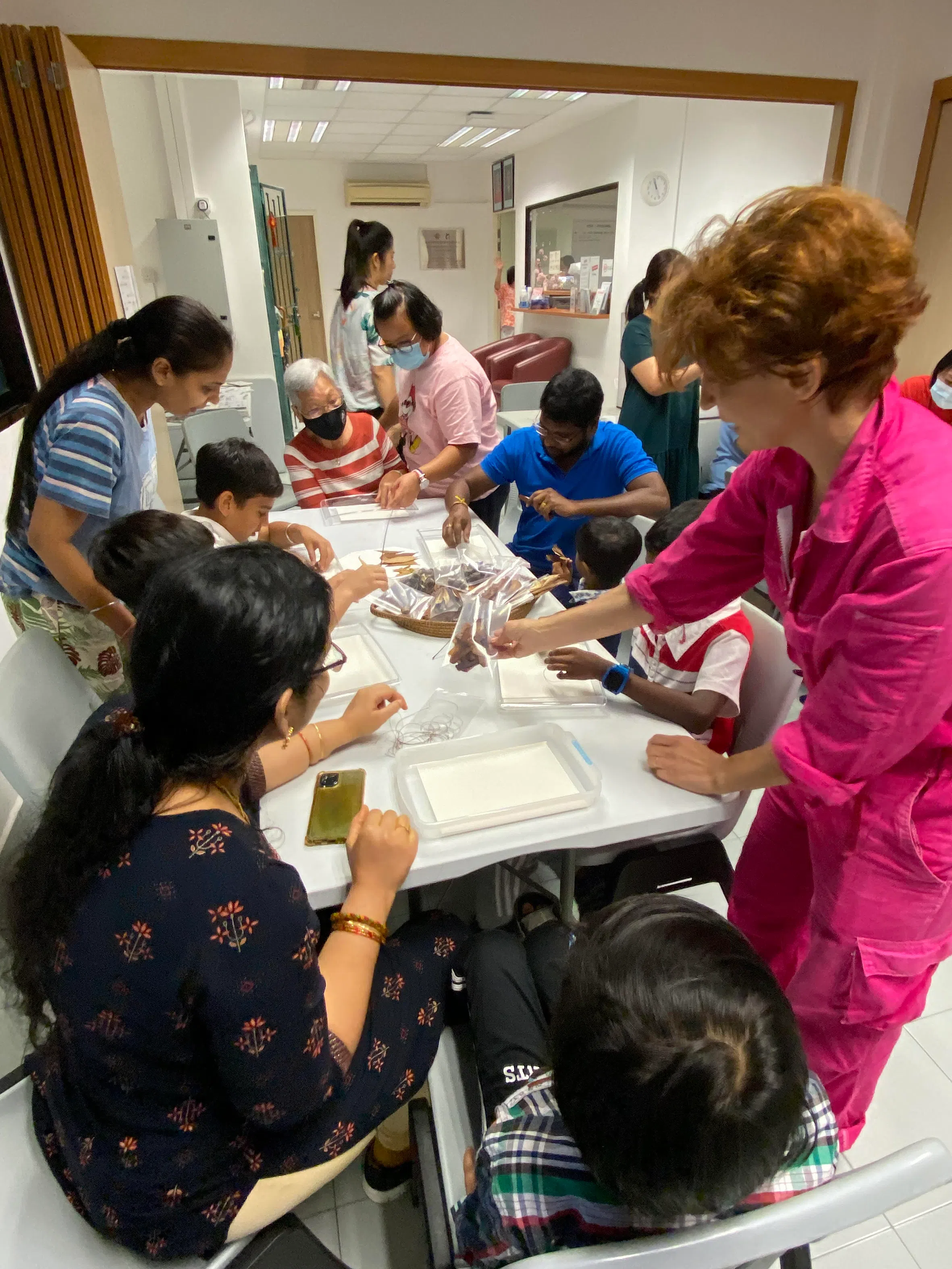 Artists and residents of Bukit Gombak working on the exhibition called Insect Inventorium for Singapore Art Week 2023.
