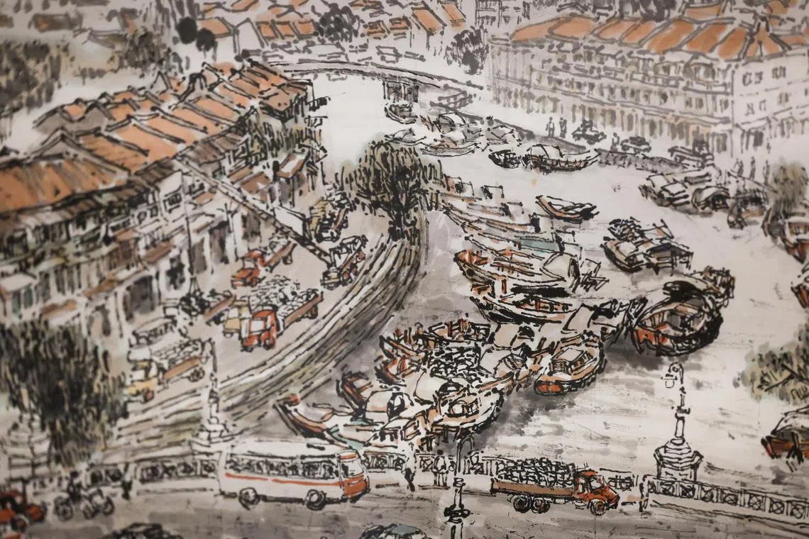 Two panoramic Singapore River scenes – done three years apart and placed side by side – offer a chance to re-evaluate his legacy in different mediums.