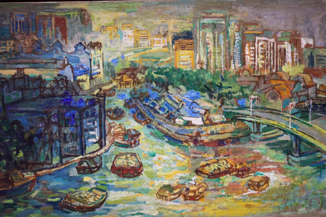 “He slowly tries to inject certain non-oil-painting techniques into his oil work,” says Ms Lam, who points out the slender and sharp brush work on some of the trees in Singapore River II (circa 1976) that is not typical of oil painting.