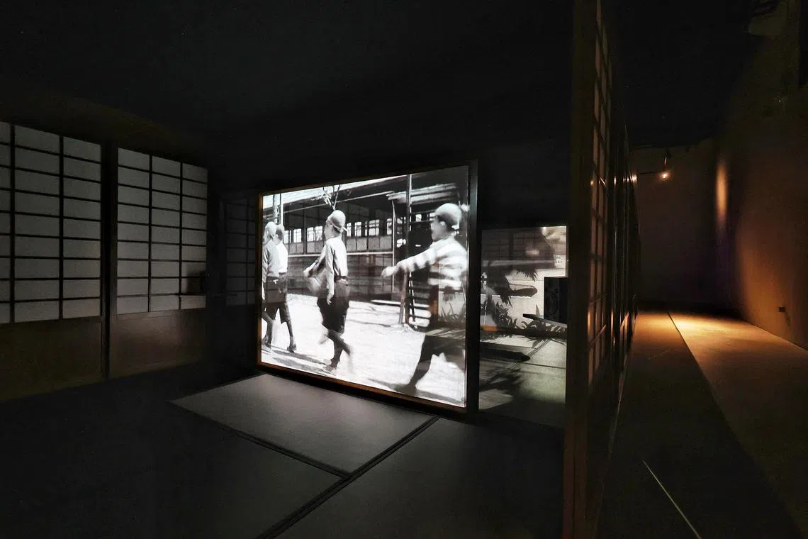 Hotel Aporia (2019), first presented as a site-specific work at the inn as part of the Aichi Triennale in Toyota City, also features videos edited with footage from Japanese auteur Yasujiro Ozu’s films.