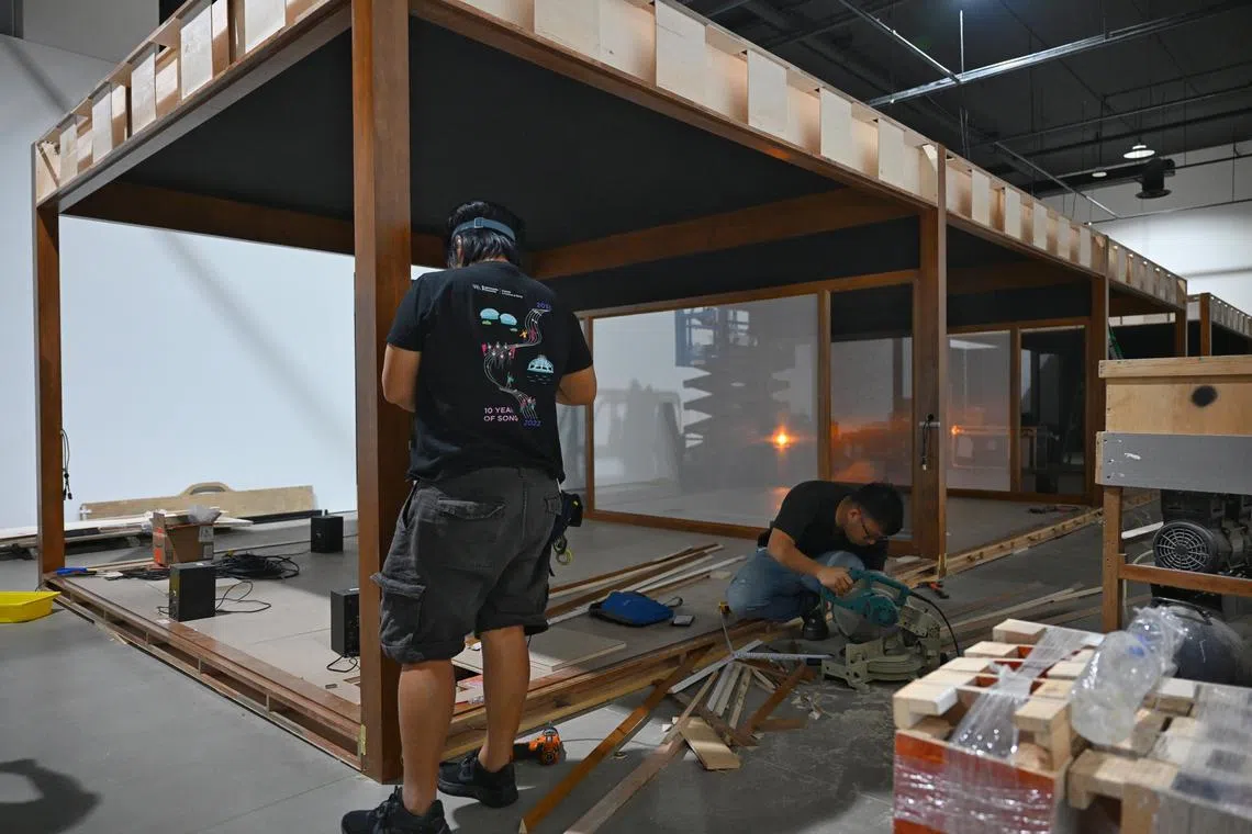 A behind-the-scenes view of how the Japanese ryokan in Hotel Aporia (2019) was installed as captured on Oct 31.