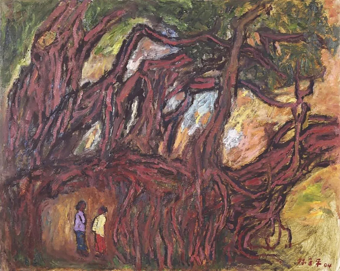 Untitled (Forest Path), for example, recalls the strong lines of Liu and classic Nanyang motifs with its kebaya-clad women and tropical foliage.